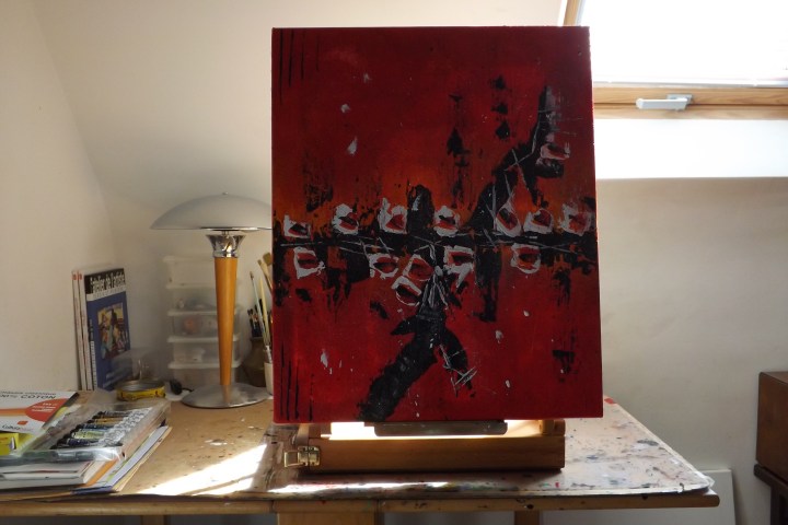 Peinture acrylique sur pâte à relief – Toile sur châssis format 50/61. Prix : 320 €