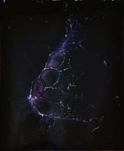 Tableau constitué de résine travaillée avec des poudres de pigments, colorants et encre – Toile sur châssis format 40/50 – Prix : 220 €.