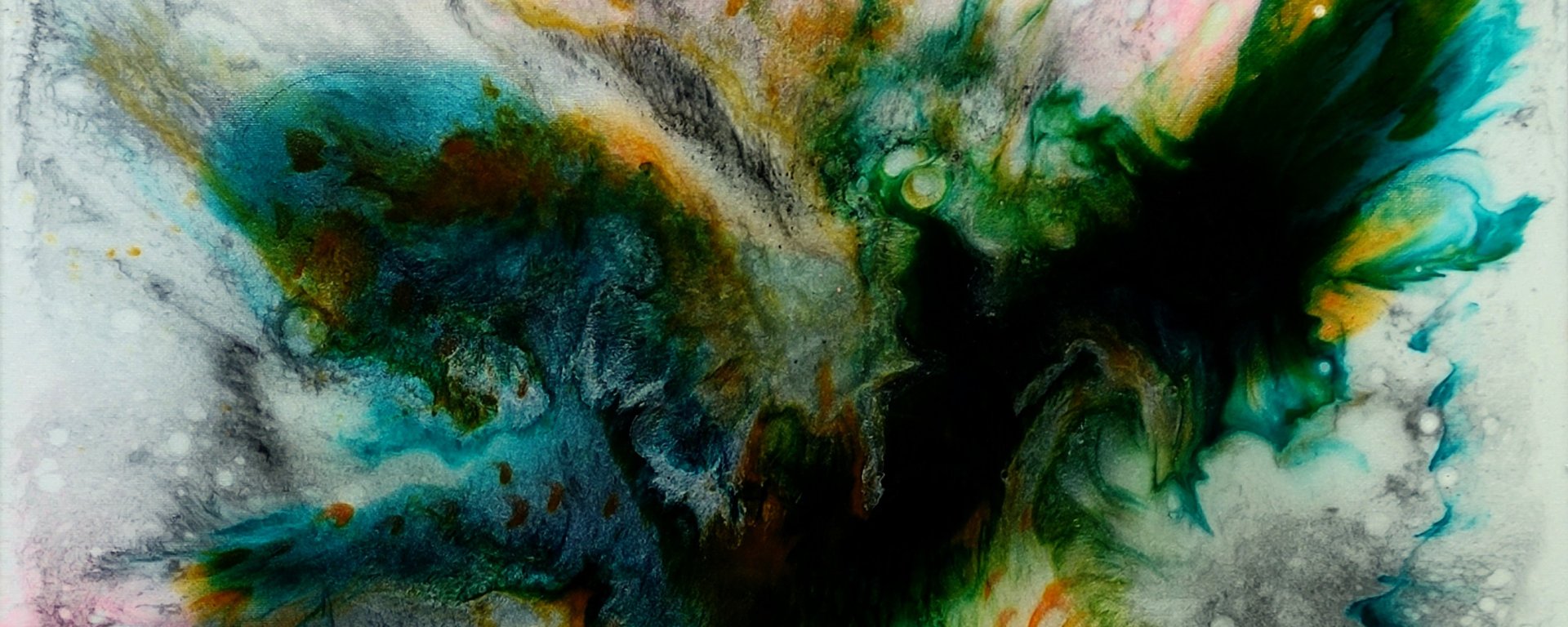 Peinture à la résine pigmentée – toile sur châssis format 40/50 – Teintes nacrées : Fost white, Power pink, Deep sea, Salamander orange. Bords peints – Prête à être accrochée. Prix : 220 €.