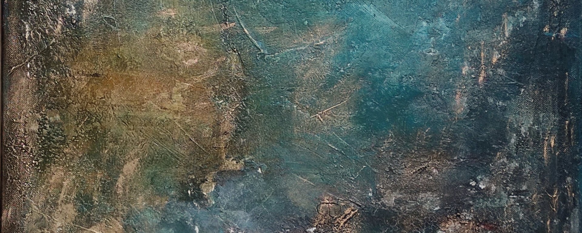 Toujours dans la série acrylique, voici « Abysses » – Un format 50/70 sur châssis entoilé – Acrylique, différentes pâtes de structure, cire à dorer. Lien d’accrochage. Prix : 330 €.