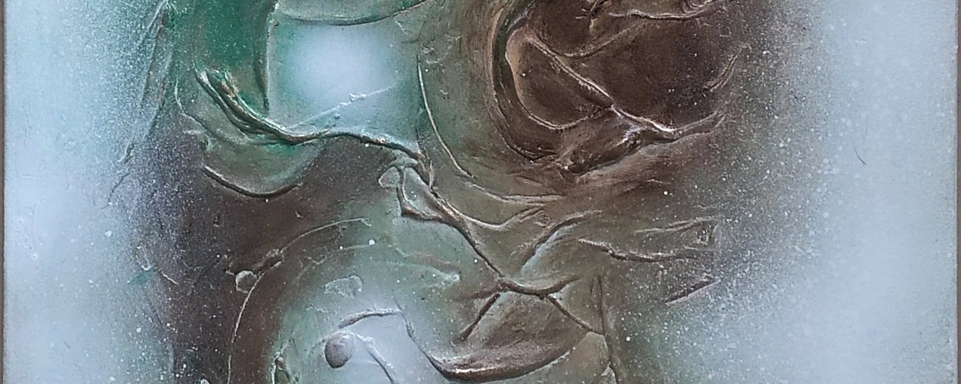 Délaissant très momentanément la peinture à la résine, je vous présente une nouveauté : Tableau à l’acrylique, pâte de structure et cire à dorer, sur châssis entoilé 40/50 – signature au dos – lien d’accrochage. Prix : 240 €