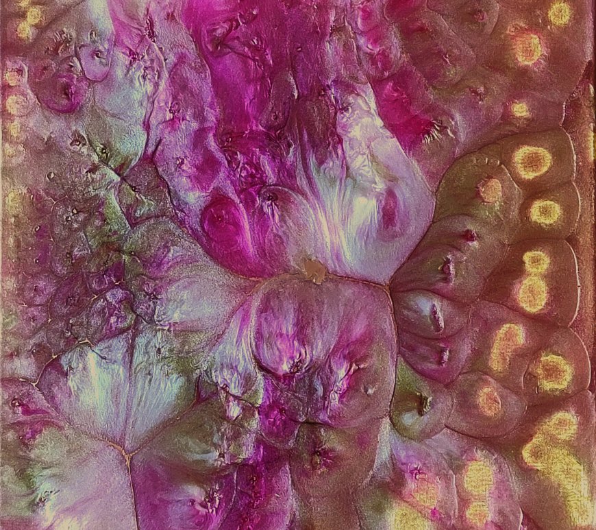 Toile constituée de résine travaillée avec des pigments à effets nacrés – toile sur châssis format 40/50 – bords peints – signée au dos. Prix : 220 €. Continuer de lire « Bélénos »