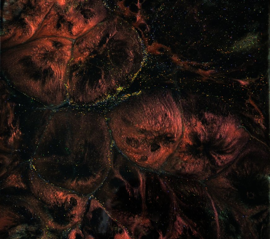 Tableau composé de résine travaillée avec pigments caméléons et hologrammes – toile sur châssis format 30/30 en 3D. Prix : 110 €. Continuer de lire « Ce que cache la nuit »