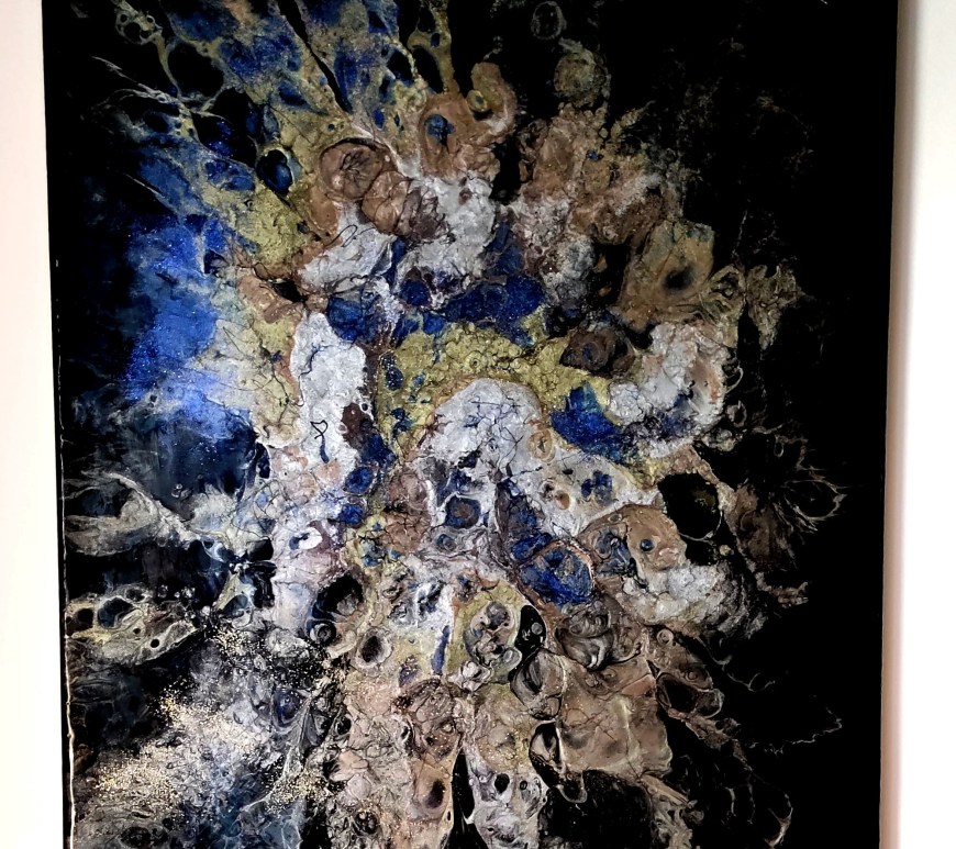Dans un tout autre style, avec une timide reprise de la résine, j’ai eu beaucoup de plaisir à créer ce tableau. Il est constitué d’acrylique, à la brosse et en spray, de pâte de structure et de résine pigmentée, sur châssis entoilé format 50/50. Lien d’accrochage. Prix : 310 €. Continuer de lire « D’or et de sang »